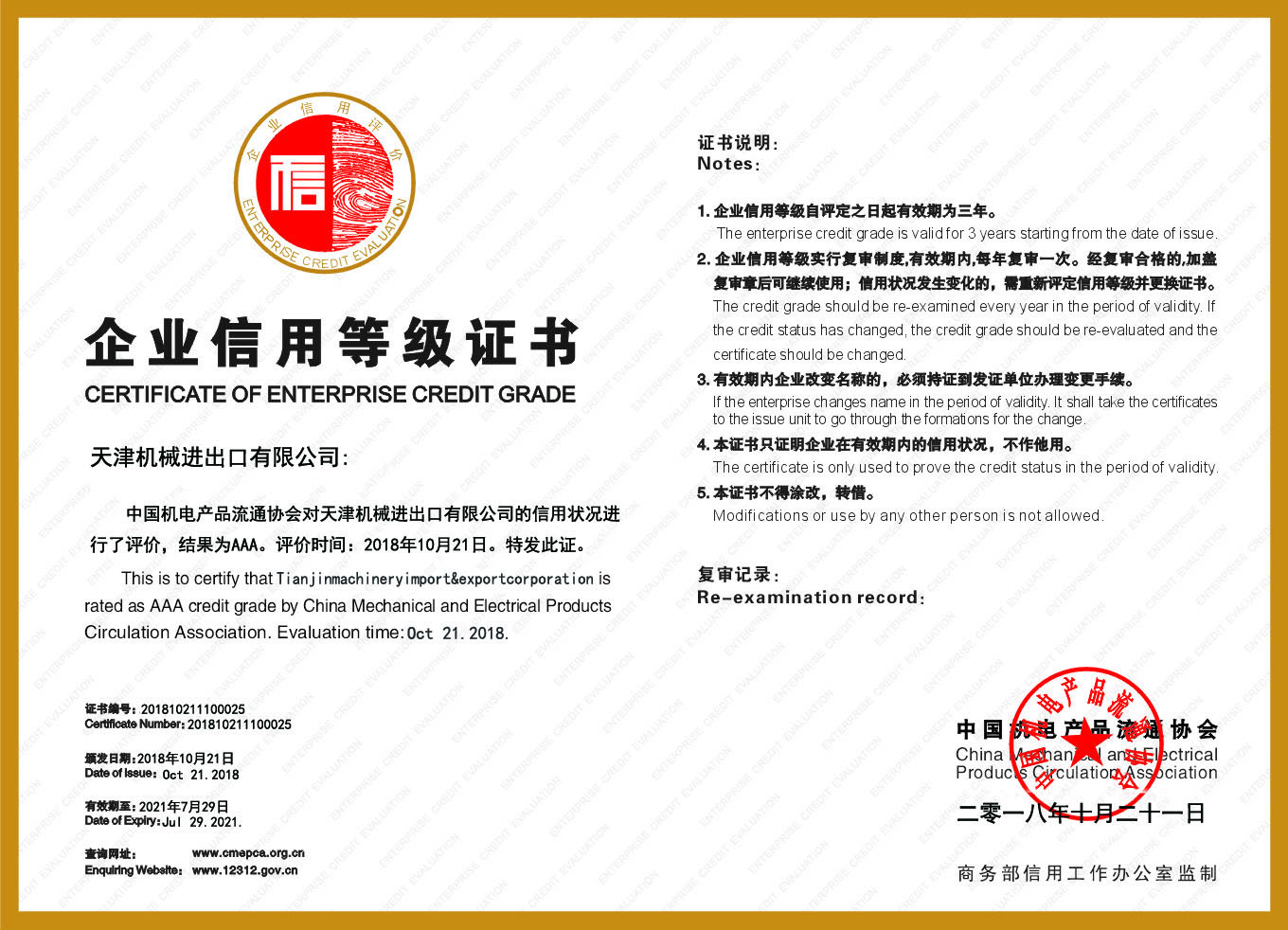 證書(shū)編號(hào): 201810211100025